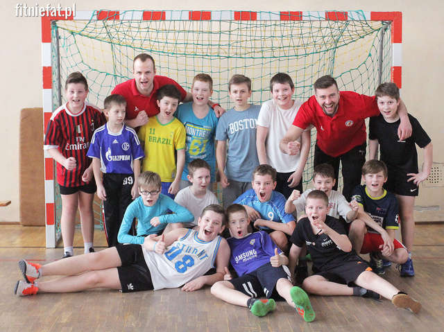 Po zajęciach znalazł się czas na pamiątkowe zdjęcie. Każdy z uczestników dostał dyplom za udział w sportowej lekcji, a Sebastian i Łukasz cierpliwie rozdawali autografy na dyplomach.