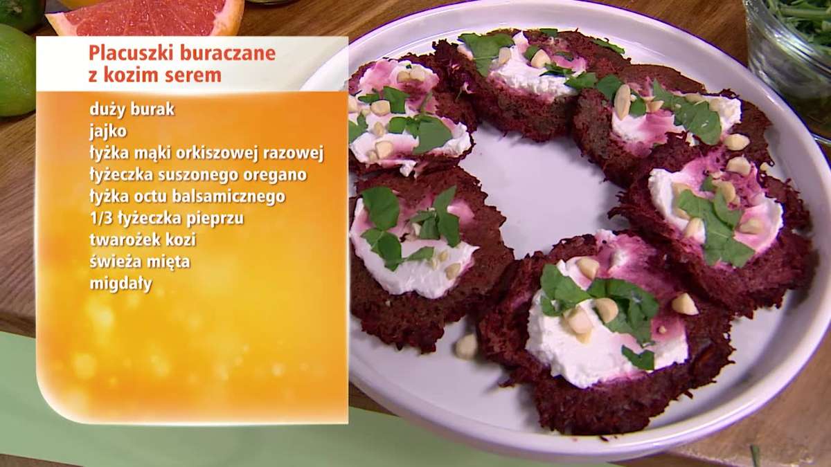 Dietetyk przygotowała: pektynowy koktajl z marchewką, placuszki buraczane z kozim serem, listkami mięty i posiekanymi migdałami oraz sałatkę z grejpfrutem.